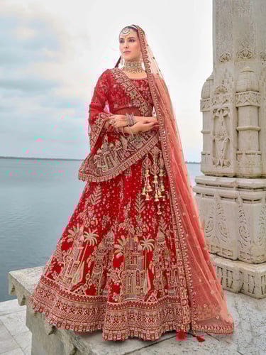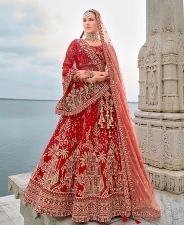 Regal Red Zardosi Bridal Lehenga with Heritage Motifs